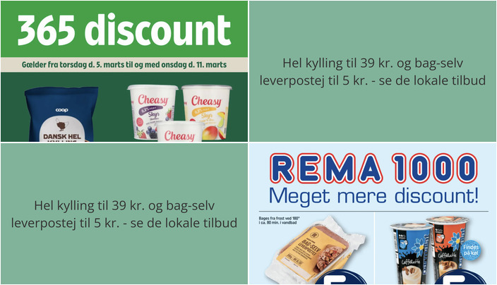 Hel kylling til 39 kr. og bag-selv leverpostej til 5 kr. - se de lokale tilbud